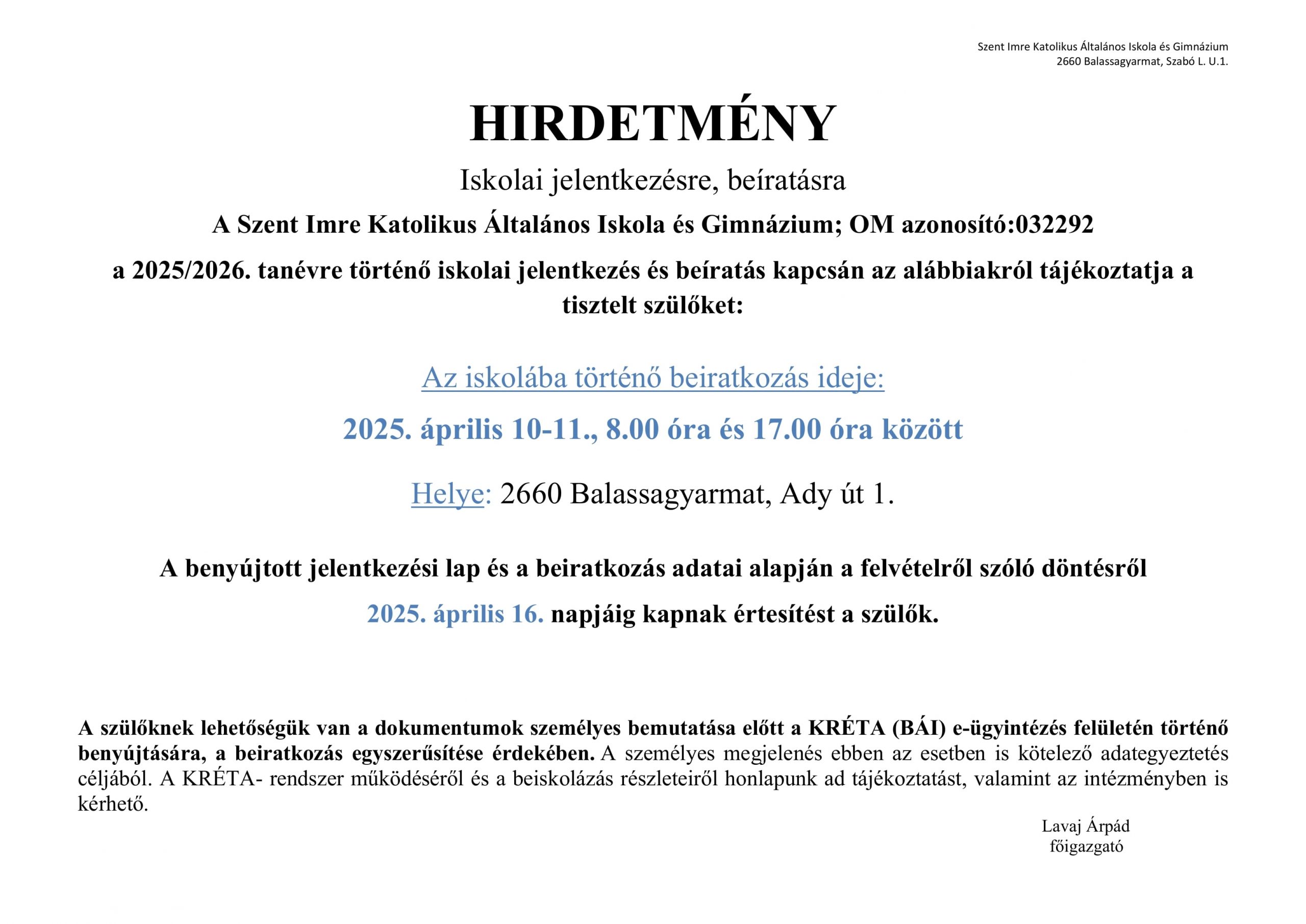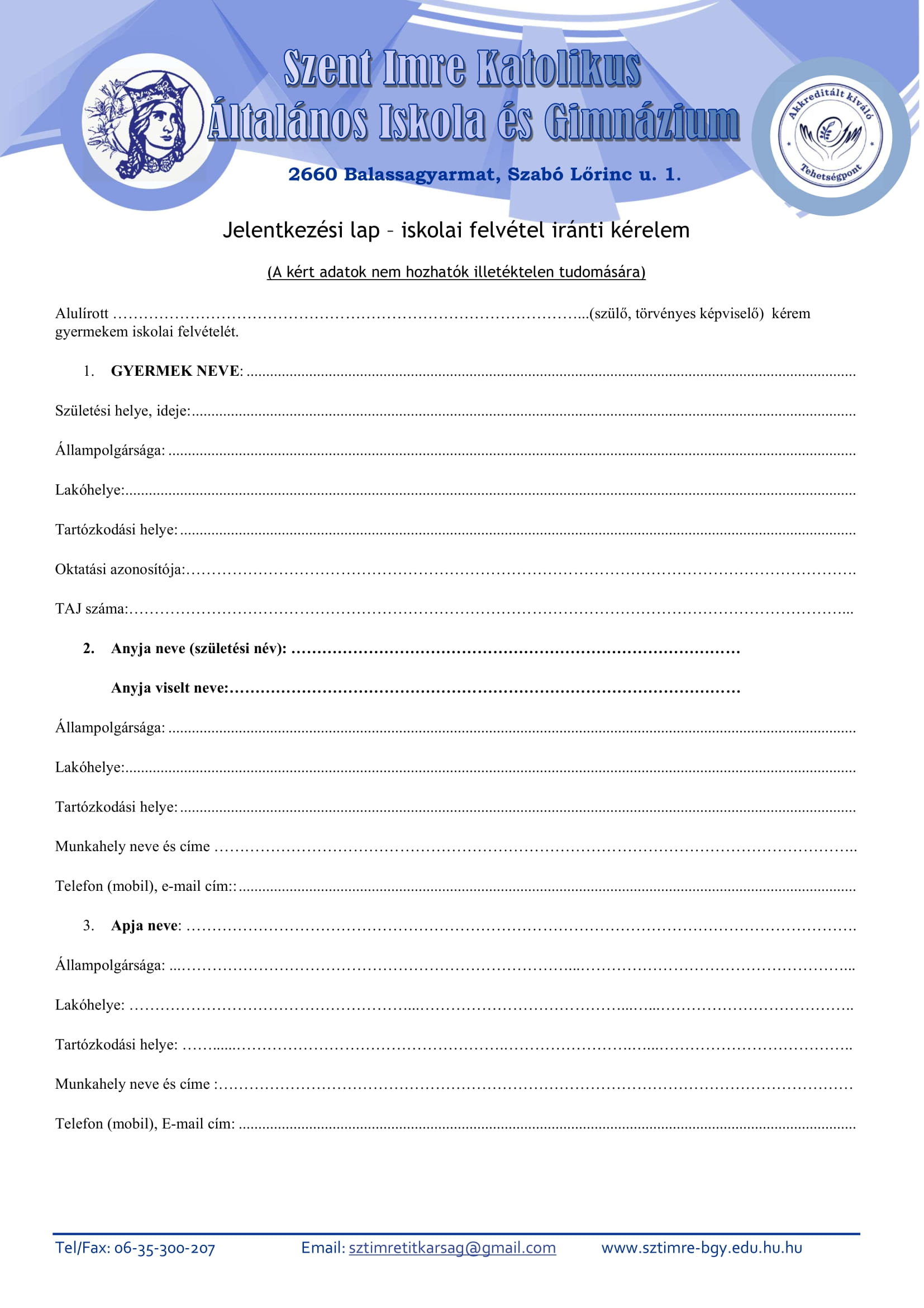 Jelentkezési lap elérhető a lap aljára görgetve vagy az alábbi linken pdf formátumban https://sztimre-bgy.edu.hu/wp-content/uploads/2025/03/jelentkezesi-lap.pdf JELENTKEZÉSI LAP ELSŐ OLDAL LETÖLTÉSLetöltés JELENTKEZÉSI LAP MÁSODIK OLDAL LETÖLTÉSLetöltés