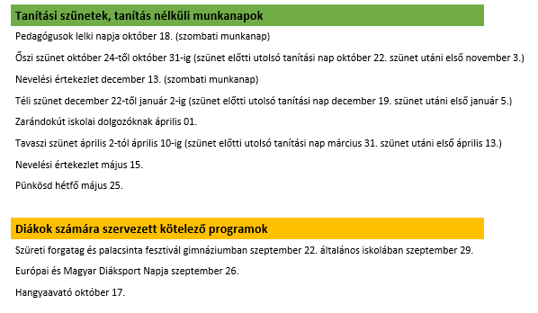 Őszi szünet: 2025. október 23-tól 2025. november 2-ig tart.