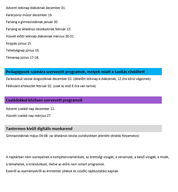 Tanévzáró: 2026. június 25. 16.30 (csütörtök)