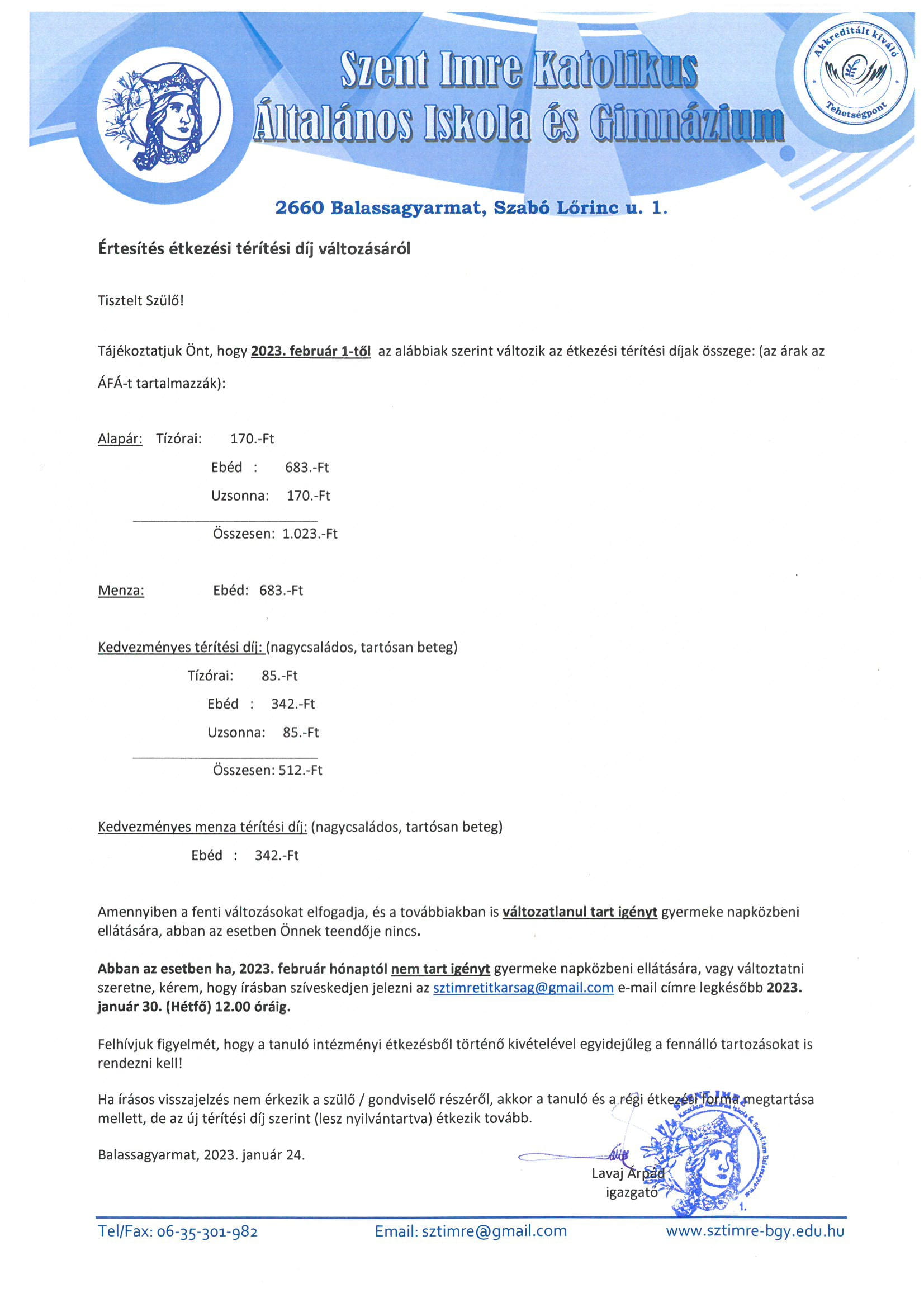 Januári étkezési díj befizetése 2023. 02. 092023. 02. 09 2023.02.13. (hétfő) 2023.02.14. (kedd) Időpont: 8-15:30 óráig (hétfő) 8-15:30 óráig (kedd) Helyszín: Balassagyarmat, Ady Endre úti épület.
