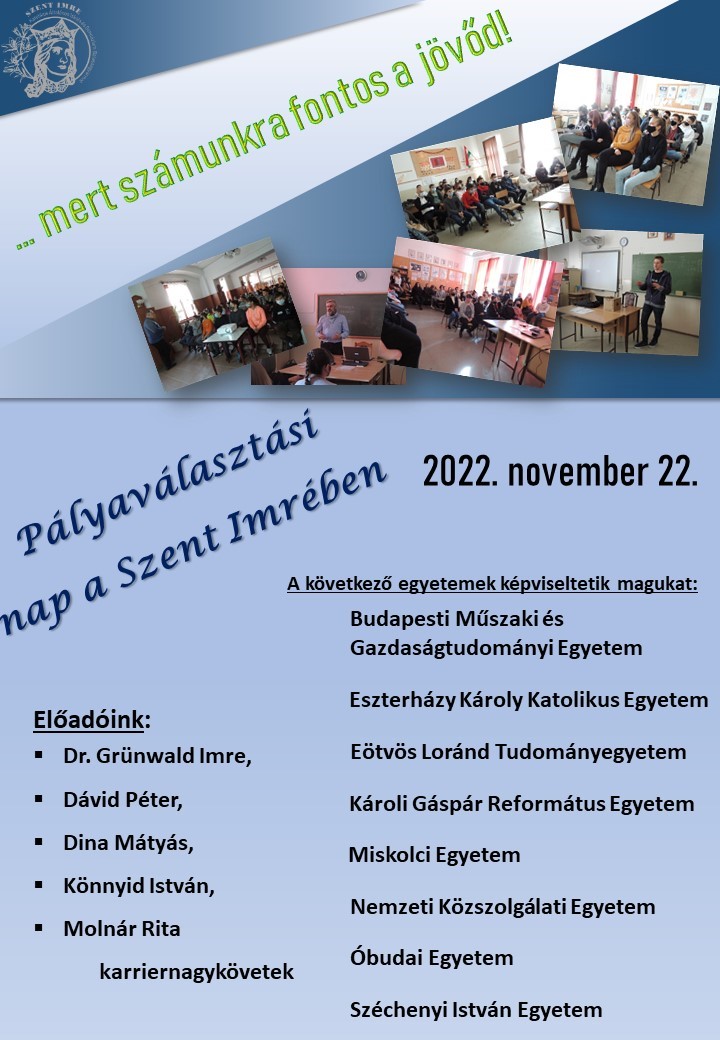 Az idei tanévben már hatodik alkalommal került sor iskolánkban az egész napos pályaválasztási napra, amelyen felsős és gimnáziumi tanulóink is különböző programokon vettek részt, ezzel is elősegítve számukra a pályaválasztást nyolcadik évfolyam befejezése illetve az érettségi után.