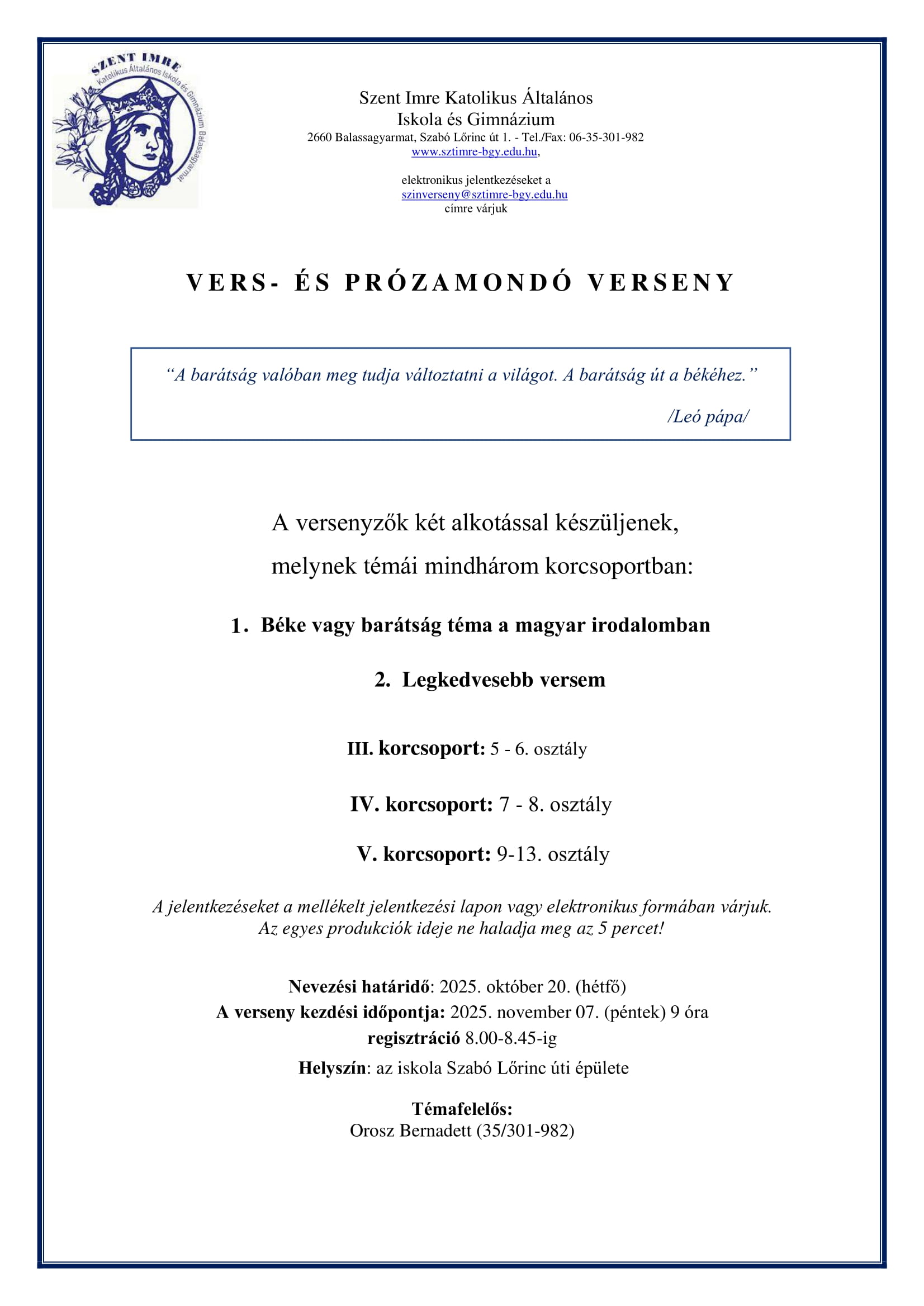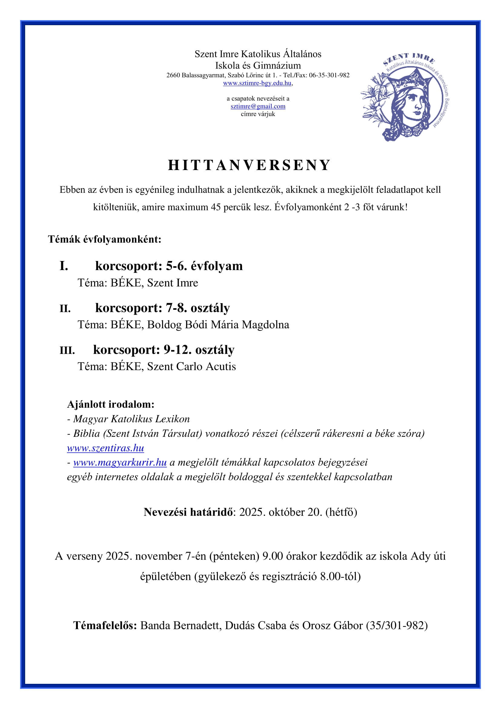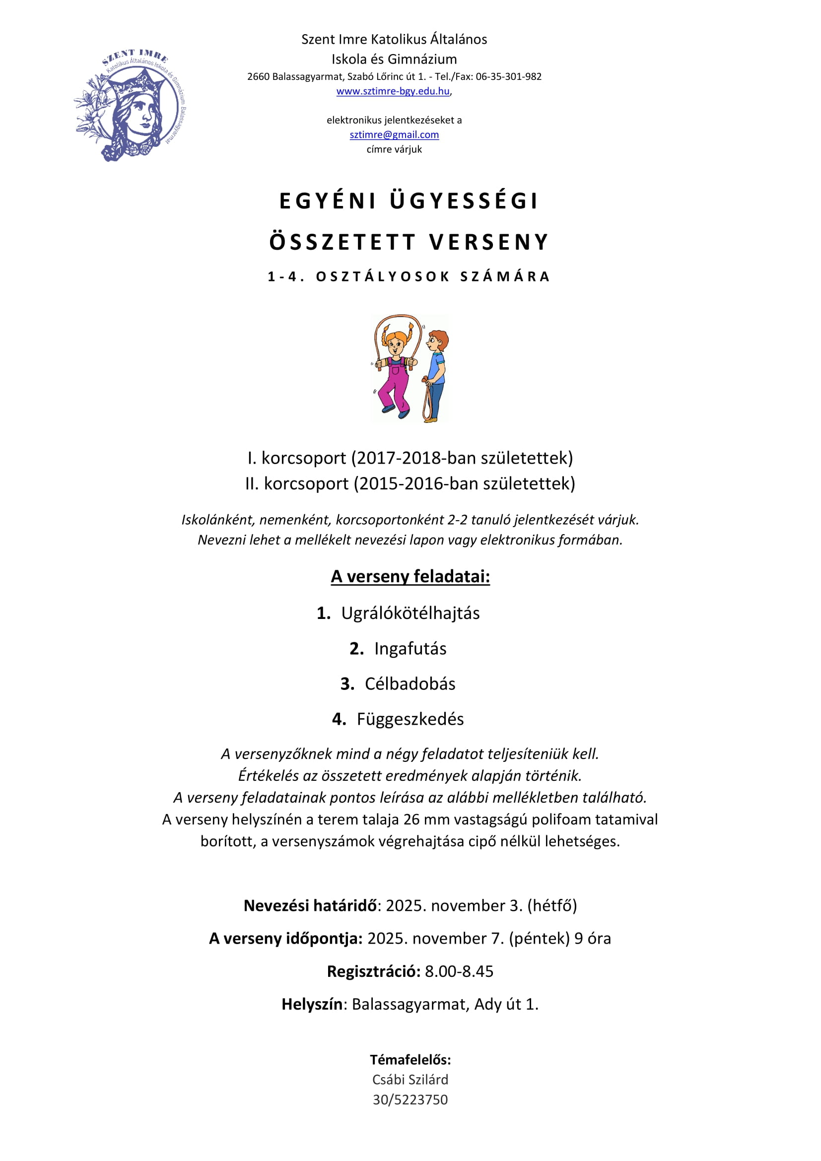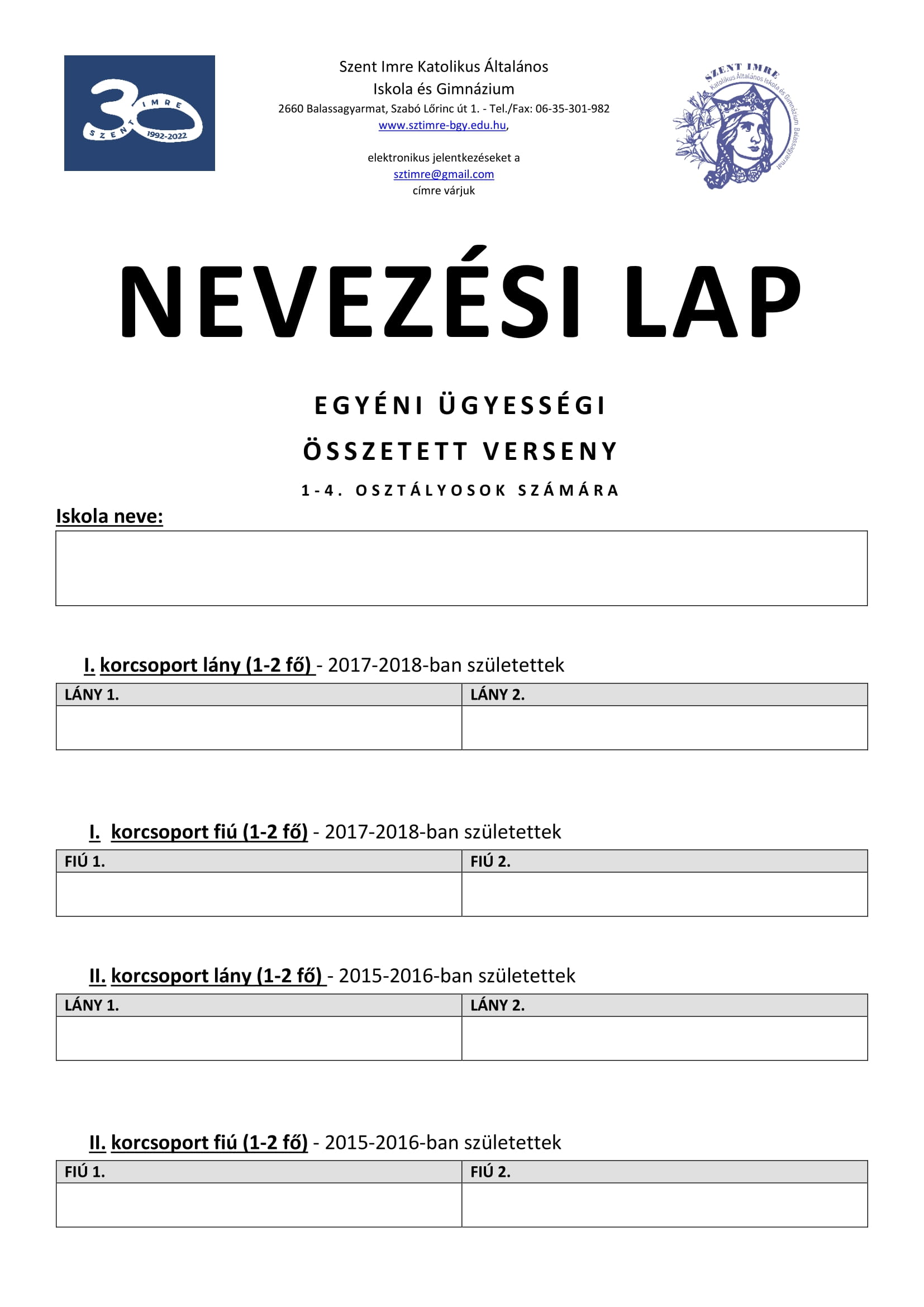 SZENT IMRE NAPOK 2025 NEVEZÉSI LAPOK ÉS VERSENYKIÍRÁSOK