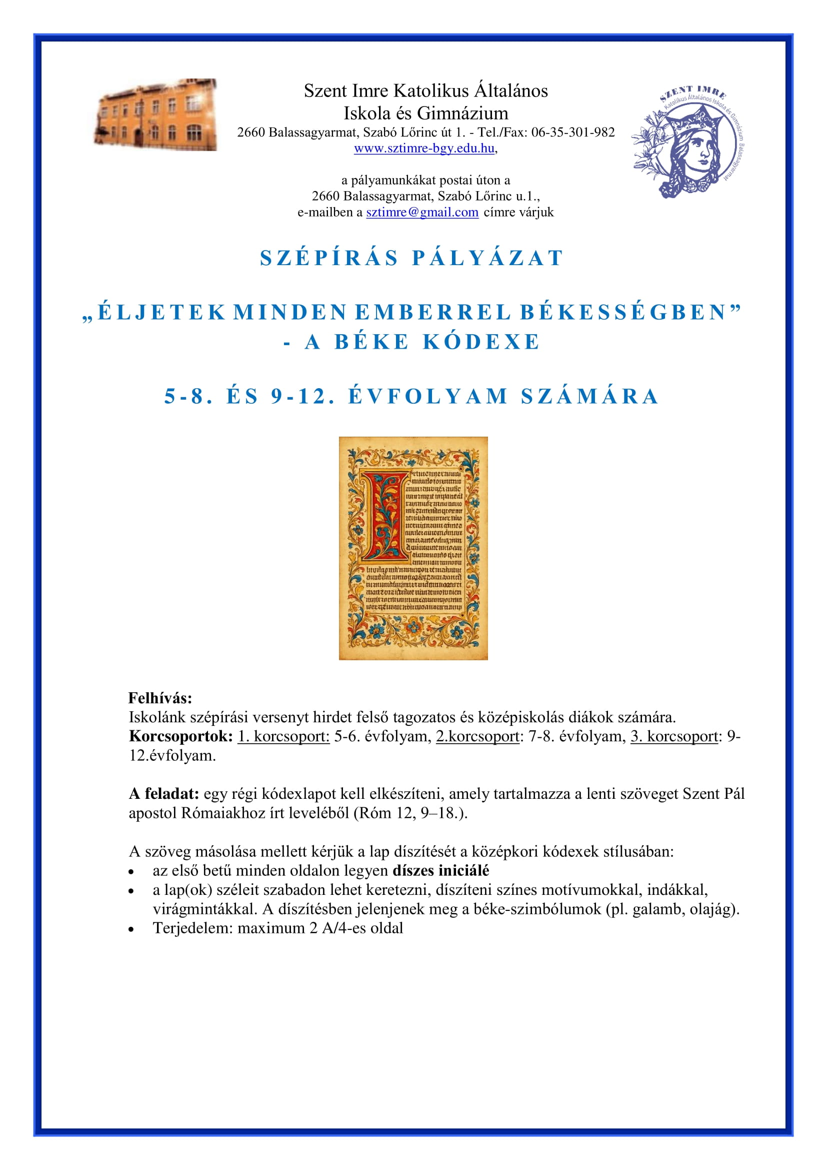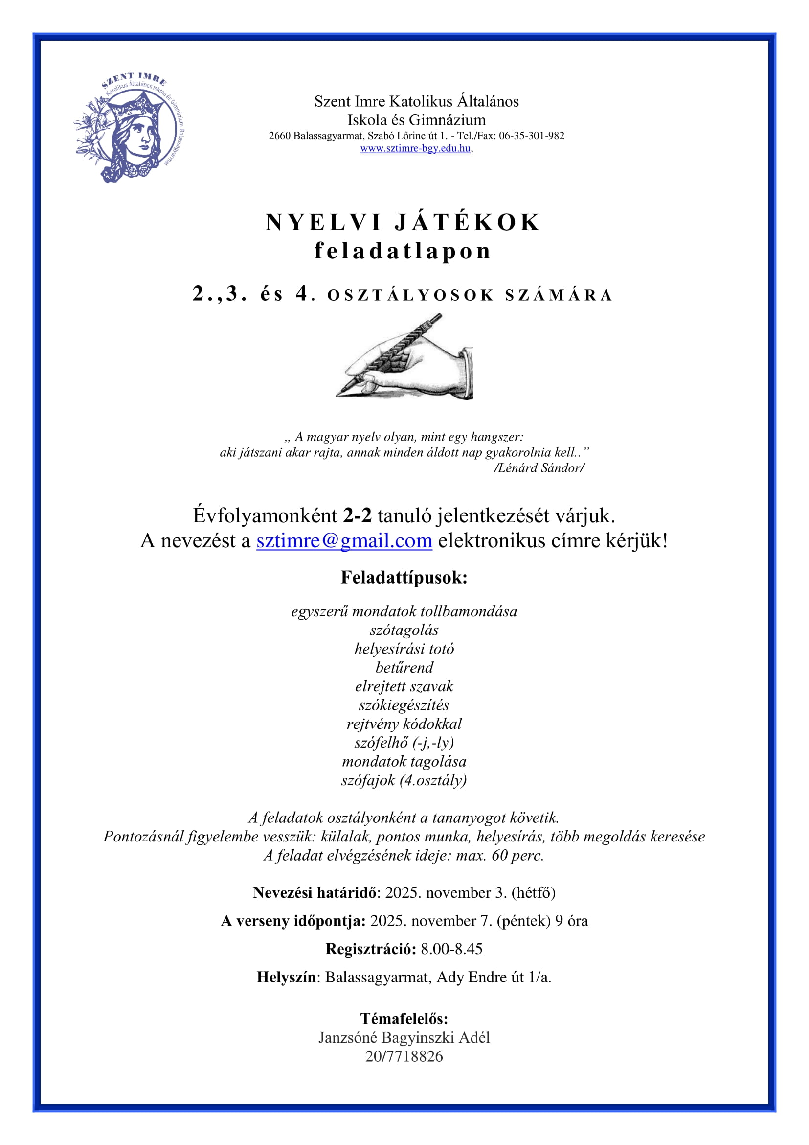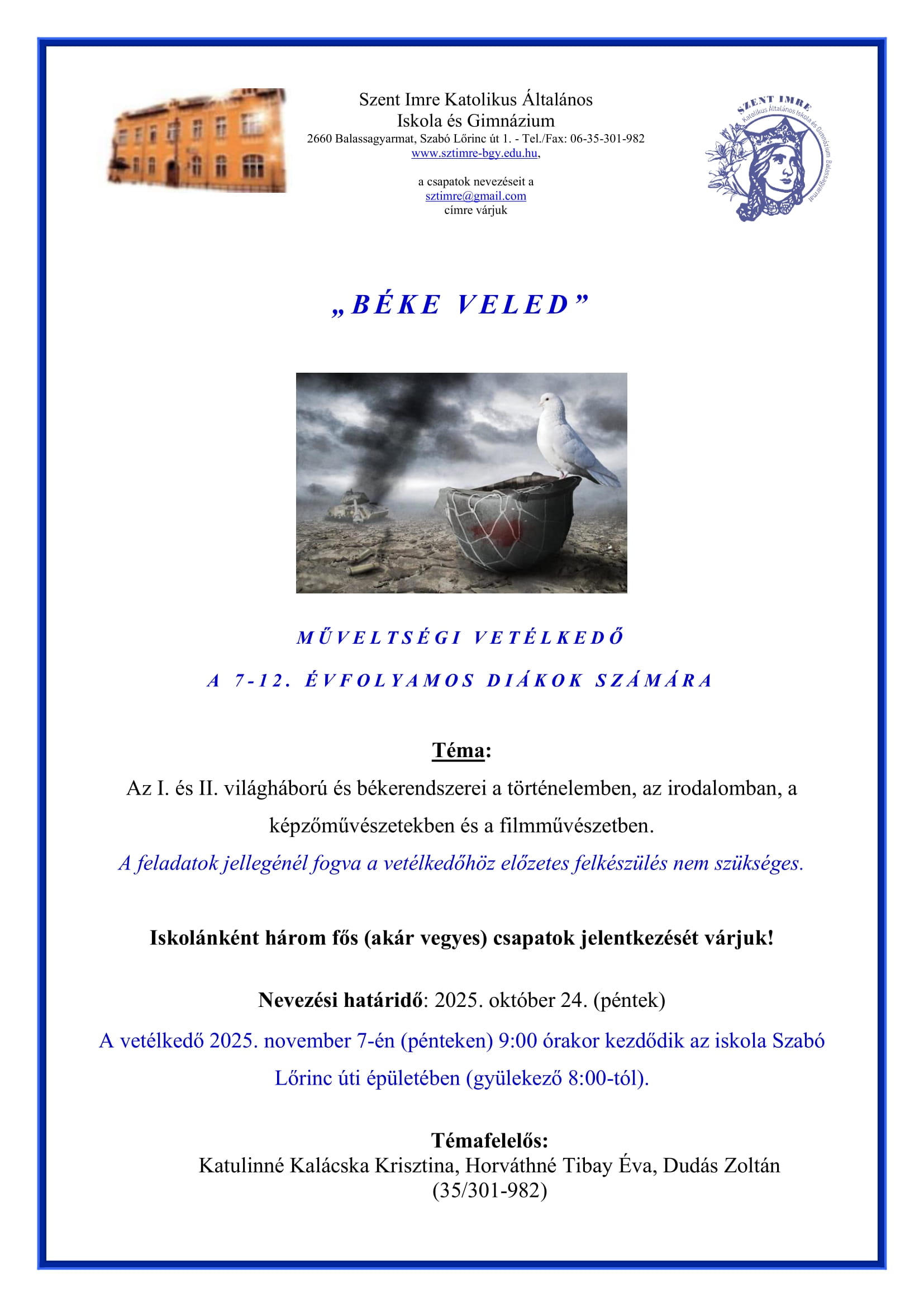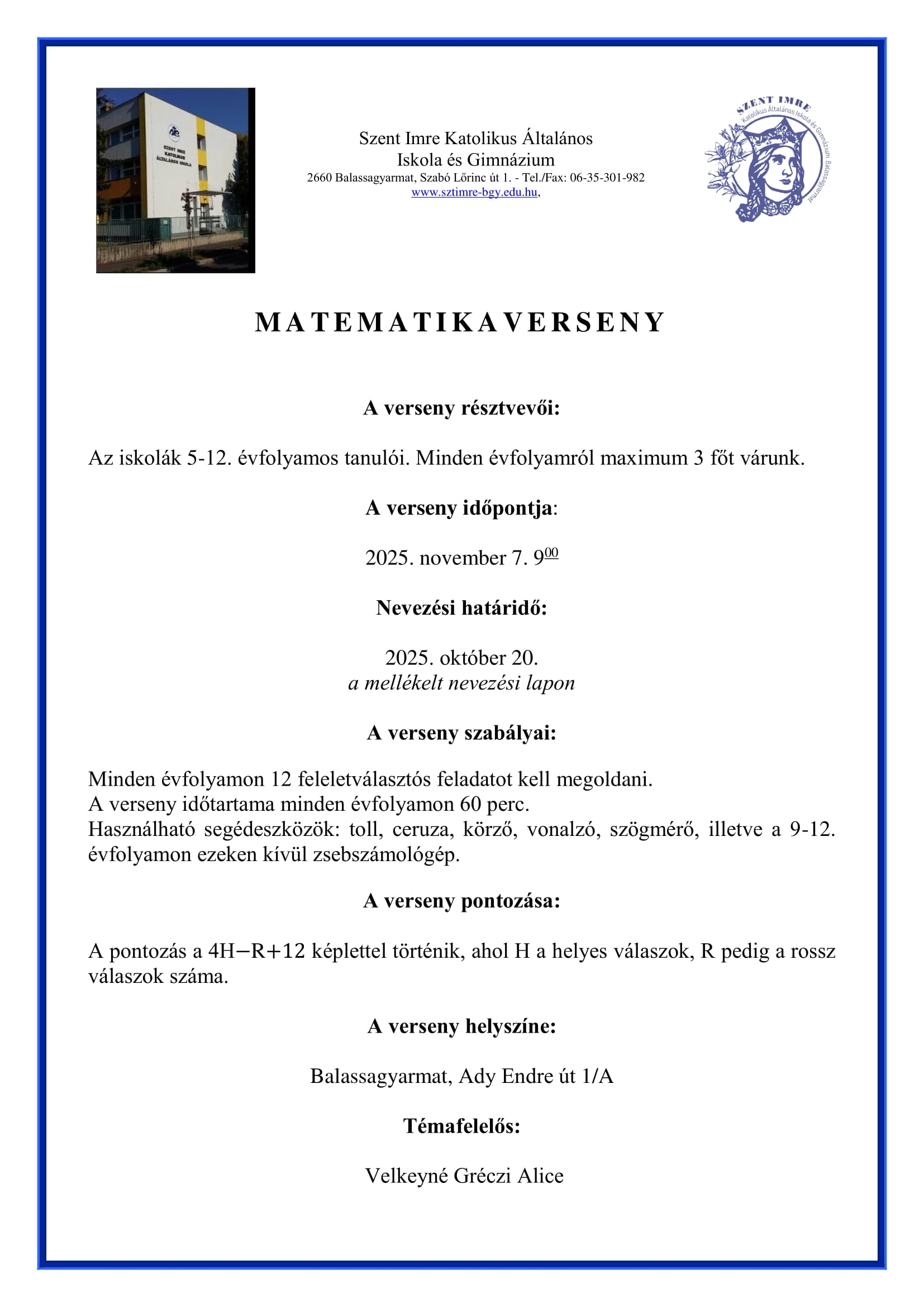 SZENT IMRE NAPOK 2025 NEVEZÉSI LAPOK ÉS VERSENYKIÍRÁSOK